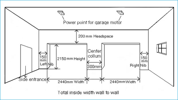 2440 mm (width) x 2150 mm (height), Head-room 200 mm, Nibs 150 mm